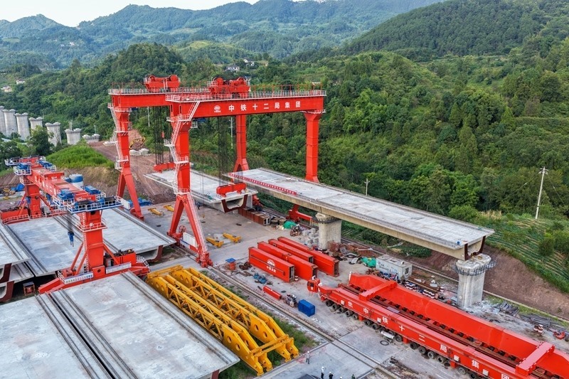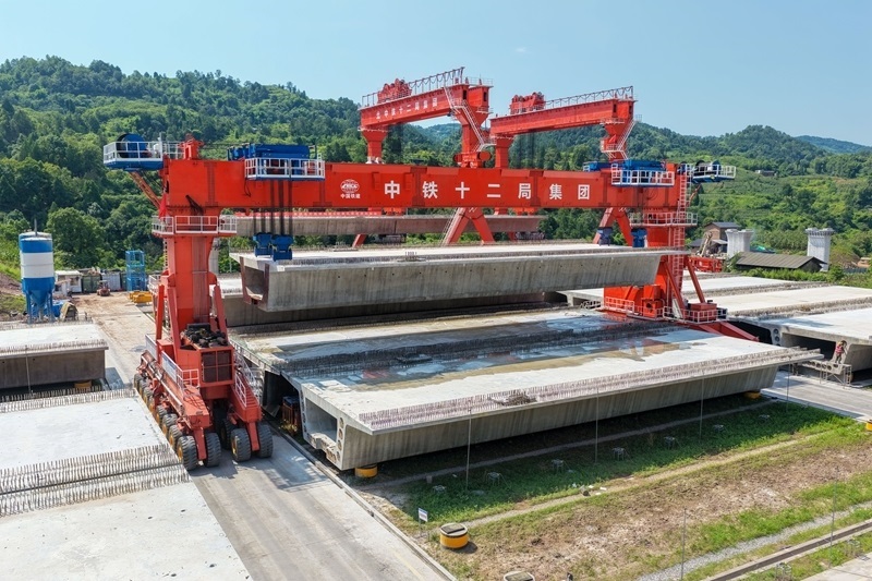 當(dāng)日,由中鐵十二局集團(tuán)承建的渝萬高鐵江林村特大橋進(jìn)入架梁施工作業(yè)階段。渝萬高鐵是我國“八縱八橫”高鐵網(wǎng)包(銀)海、京昆通道的組成部分,正線全長251公里,設(shè)計(jì)時(shí)速350公里。