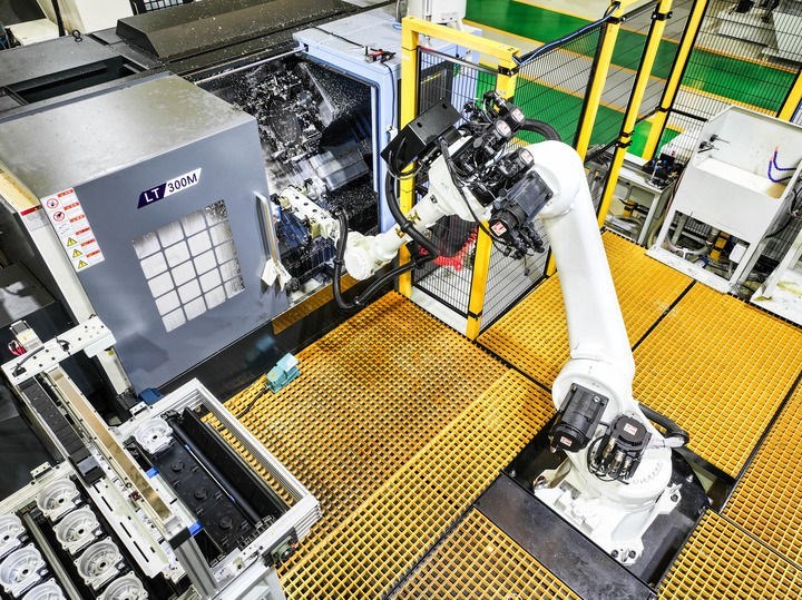 這是2025年5月9日在位于重慶市北碚區(qū)的重慶順多利機(jī)車有限責(zé)任公司精工基地拍攝的自動化生產(chǎn)作業(yè)現(xiàn)場(無人機(jī)照片)。新華社記者 王全超 攝