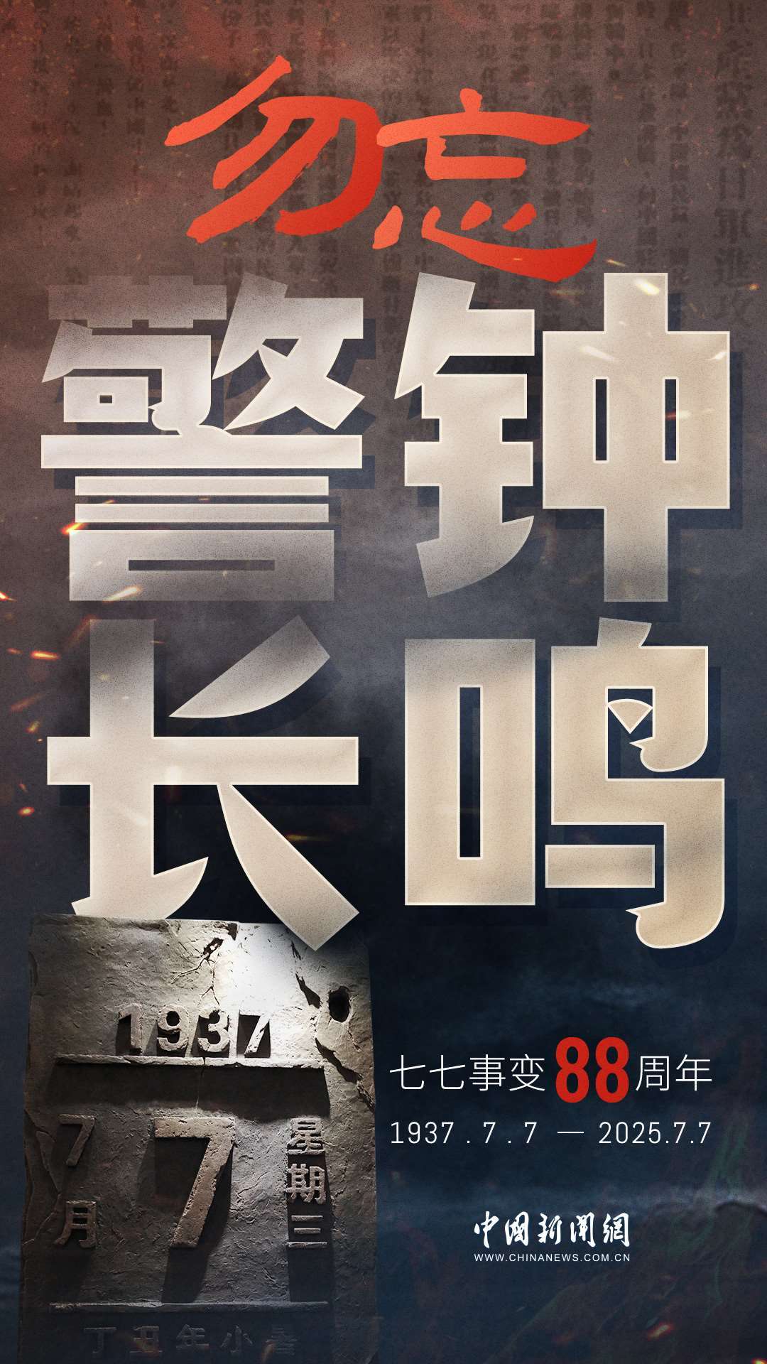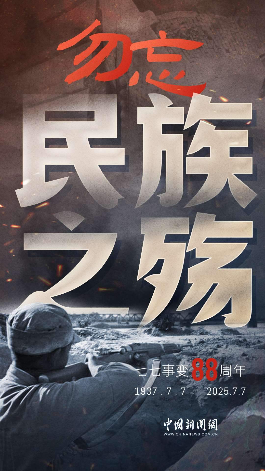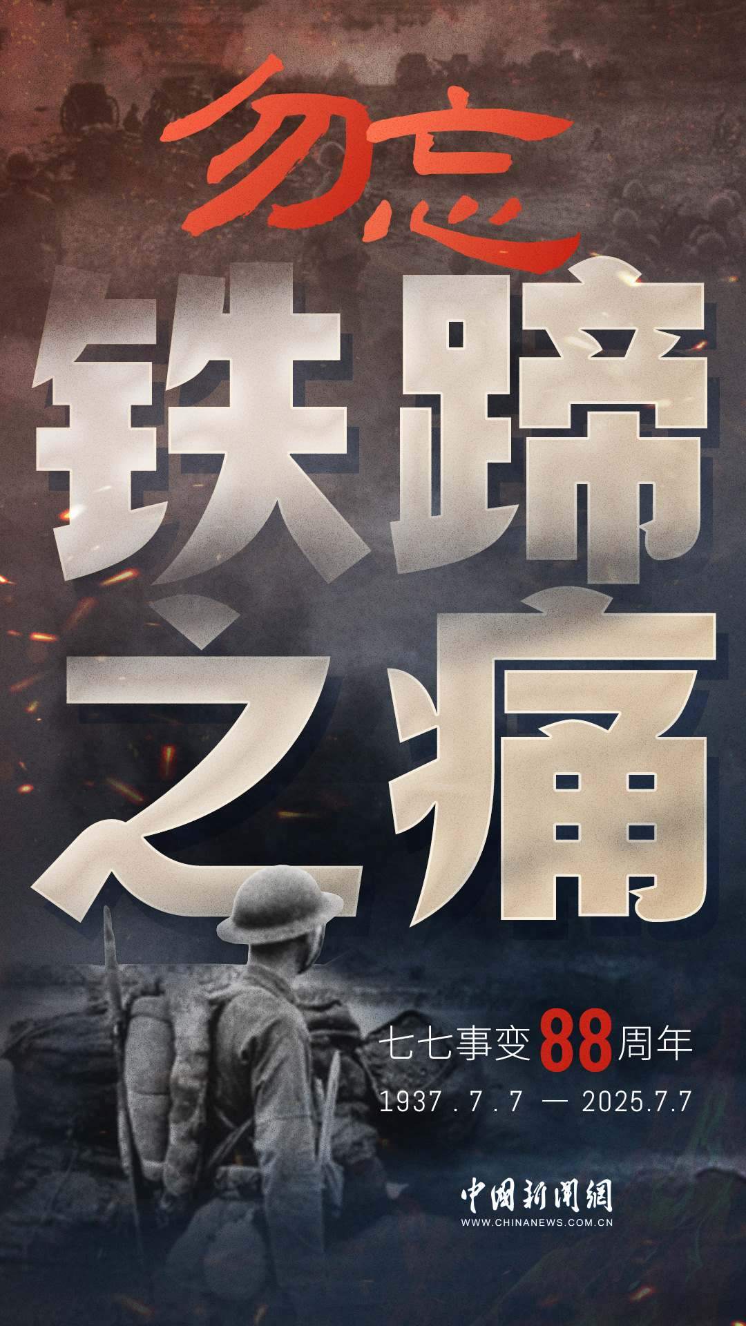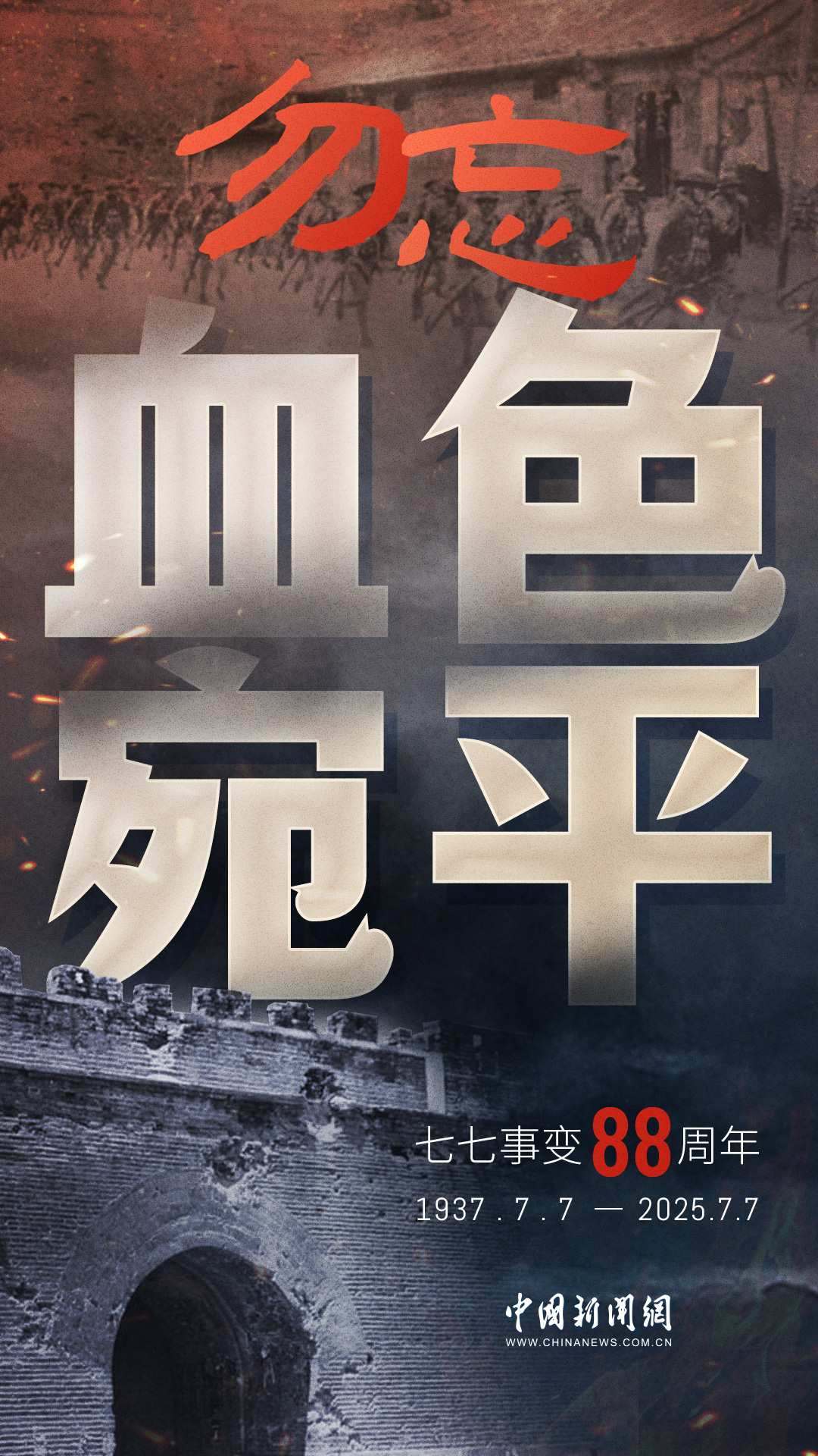 1937年7月7日,盧溝橋的槍聲撕裂長(zhǎng)夜,中華兒女赴湯蹈火,以血肉之軀筑起御敵長(zhǎng)城。88載歲月流轉(zhuǎn),硝煙雖散,彈痕猶在,那段浸透血淚的歷史,是刻在民族記憶里永不褪色的烙印。今日山河錦繡,國(guó)泰民安,正是先烈用生命換來的盛世。七七事變88周年,致敬英烈,銘記國(guó)殤,吾輩自強(qiáng),護(hù)山河無恙!