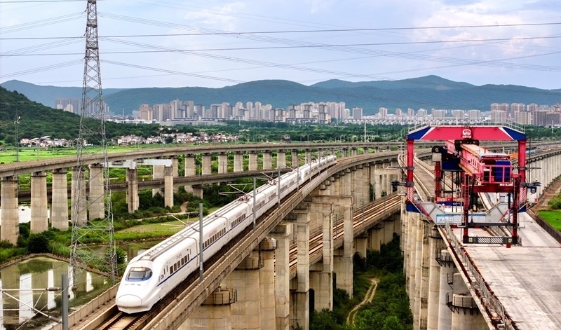 當日,隨著最后一榀長32.6米、重431.75噸的箱梁精準架設至預定位置,標志著巢馬城際鐵路全線箱梁架設完成,為無砟軌道施工和全線按期通車奠定堅實基礎。巢馬城際鐵路是國家“八縱八橫”高鐵網(wǎng)滬漢蓉快速通道合肥至上海間的重要組成部分,設計時速350公里。