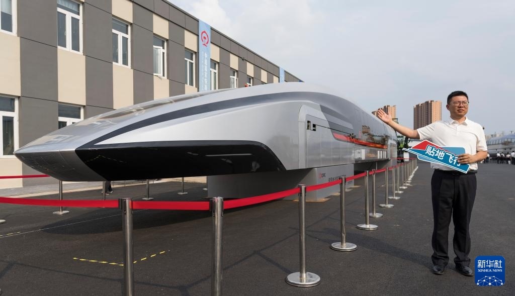 這是7月9日在國家鐵道試驗(yàn)中心展區(qū)拍攝的時(shí)速600公里高速磁浮交通系統(tǒng)。新華社記者 才揚(yáng) 攝