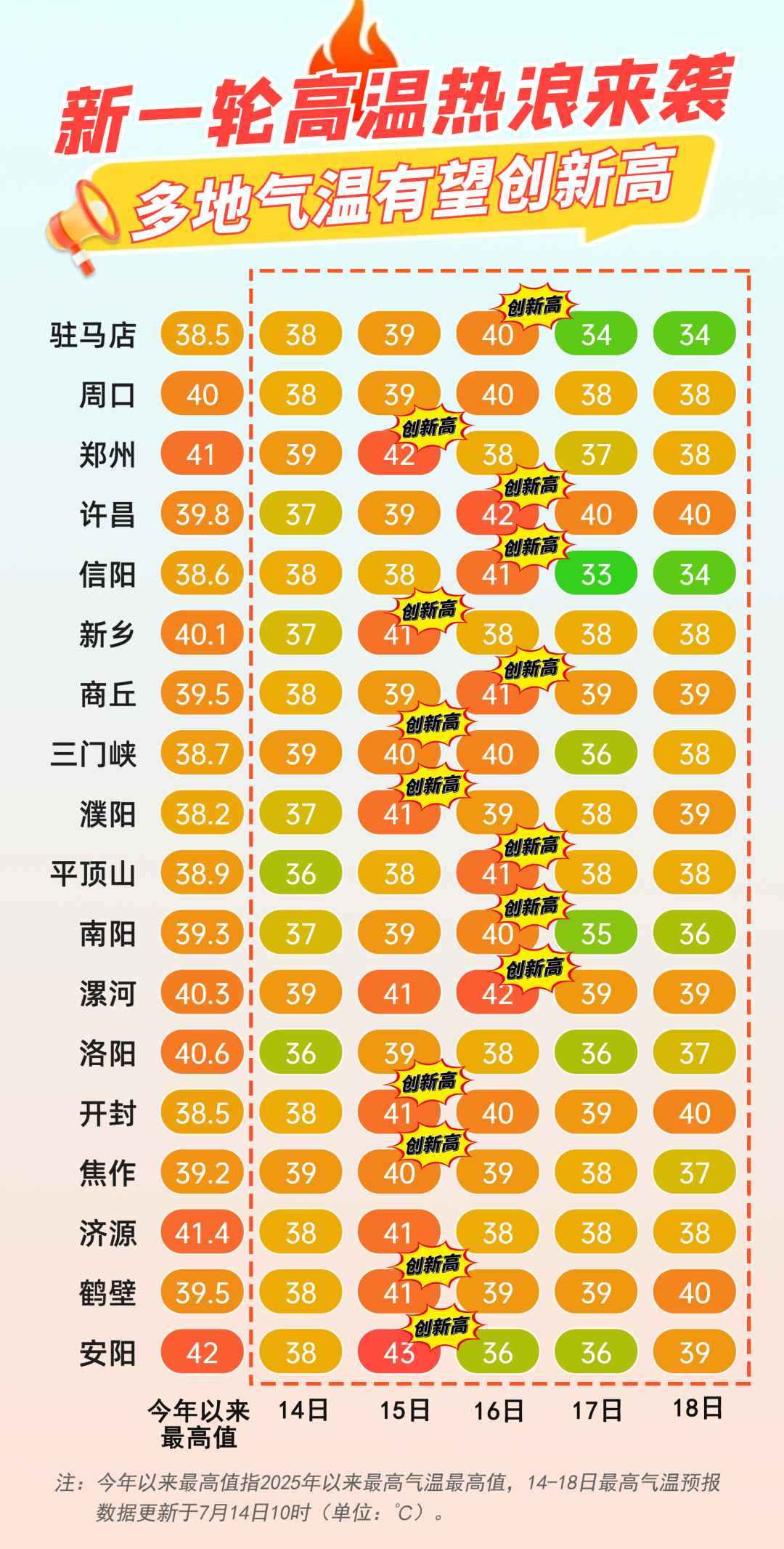 正如預報所示,昨日(7月14日),我省大范圍地區(qū)經(jīng)歷了酷熱天氣,鄭州、新鄉(xiāng)、焦作等地氣溫紛紛突破40℃大關,河南省氣象臺也于當日中午12時果斷將預警升級為紅色。