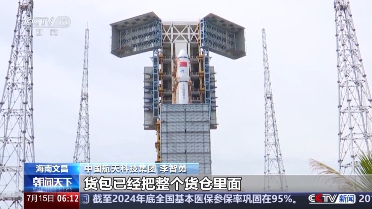 中國航天科技集團 李智勇:裝貨量特別大,天舟九號是天舟六號以來裝貨量最大的一次,這個貨包已經把整個貨倉里面堆滿了,而且有些地方還突出來了。