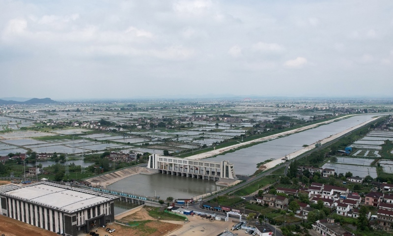 這是7月27日拍攝的引江濟淮鳳凰頸泵站(無人機照片)。