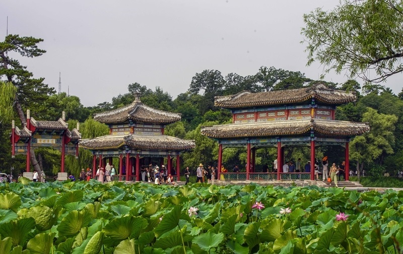8月12日,游客在河北省承德市避暑山莊景區(qū)游玩觀(guān)景。