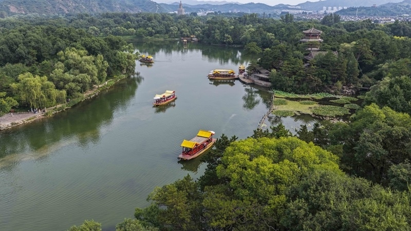 8月12日,游客在河北省承德市避暑山莊景區(qū)游玩觀(guān)景(無(wú)人機(jī)照片)。