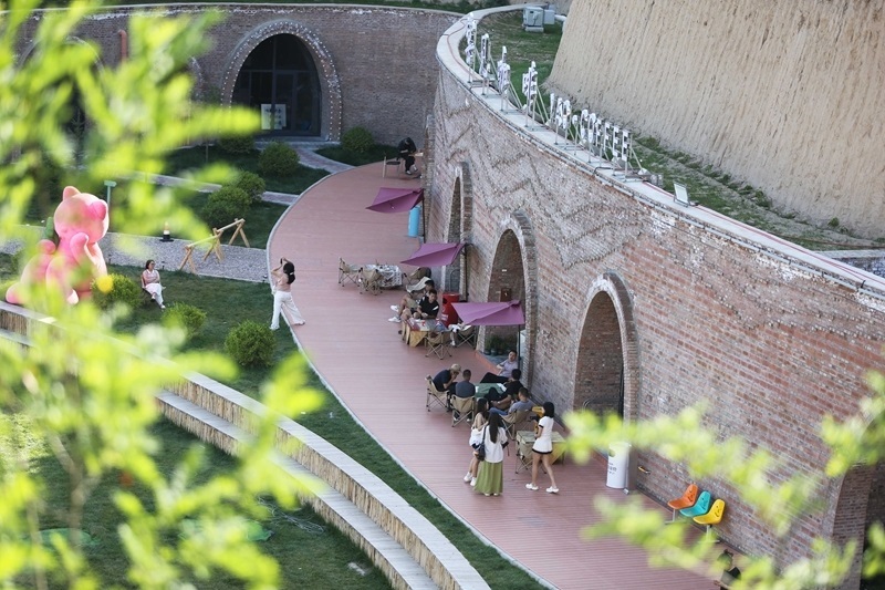 8月13日,人們?cè)诟拭C省定西市安定區(qū)青嵐山鄉(xiāng)的一家窯洞咖啡館休閑。