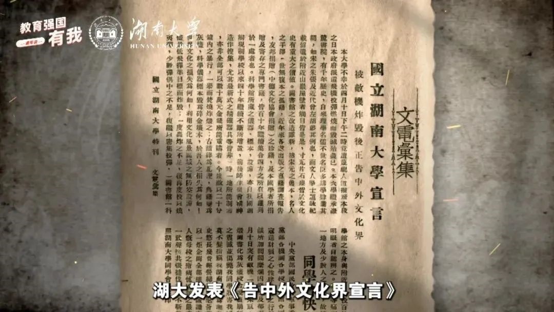 習(xí)近平總書記強(qiáng)調(diào),廣大青少年生逢其時(shí),要賡續(xù)紅色血脈,樹立強(qiáng)國有我的遠(yuǎn)大志向,做堂堂正正、光榮自豪的中國人,勇?lián)褡鍙?fù)興的時(shí)代大任。2025年是中國人民抗日戰(zhàn)爭暨世界反法西斯戰(zhàn)爭勝利80周年,教育部政務(wù)新媒體推出“教育強(qiáng)國,有我!”網(wǎng)絡(luò)主題宣傳活動之“青年說·傳承篇”系列,挖掘高校里的紅色記憶,展現(xiàn)青年師生的時(shí)代擔(dān)當(dāng)。今天,跟教育小微通過1個微視頻和1個故事,共同回顧湖南大學(xué)師生英勇抗戰(zhàn)的烽火歲月——