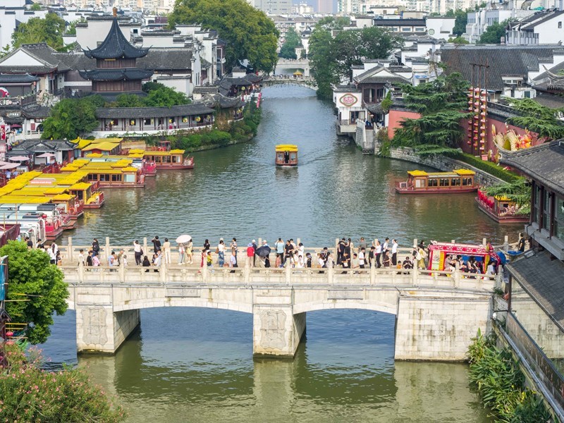 10月5日,人們在南京夫子廟景區(qū)游玩(無人機(jī)照片)。