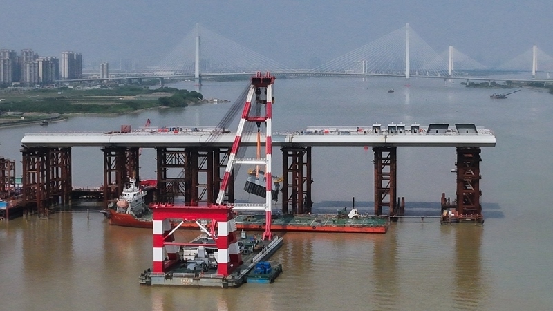 10月10日,由中鐵建大橋局承建的萬龍大橋吊裝架設首節(jié)段主塔。位于廣州南沙區(qū)的萬龍大橋跨越珠江口龍穴南水道,全長5146米,主橋長1150米,主跨608米,為粵港澳大灣區(qū)又一世界級橋梁。