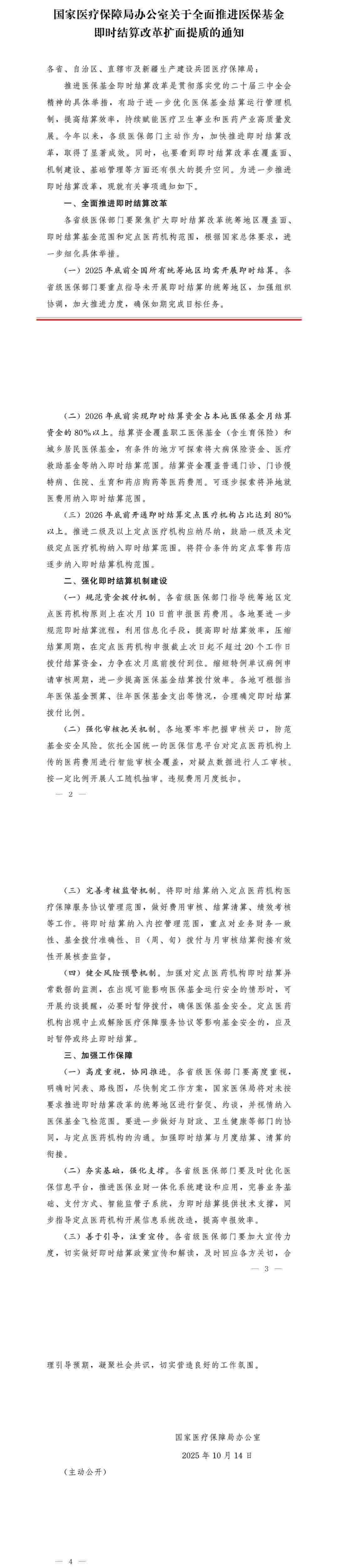 據(jù)國(guó)家醫(yī)保局官方微信消息,國(guó)家醫(yī)療保障局辦公室發(fā)布《關(guān)于全面推進(jìn)醫(yī)?;鸺磿r(shí)結(jié)算改革擴(kuò)面提質(zhì)的通知》。全文如下: