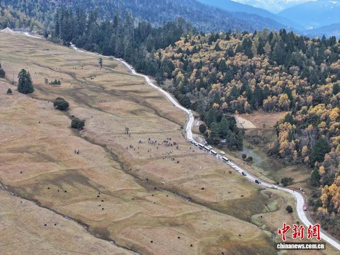 10月28日,魯朗高山牧場(無人機航拍)。貢嘎來松 攝