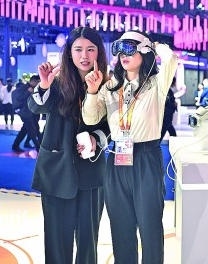 觀眾在第八屆進(jìn)博會(huì)醫(yī)療器械及醫(yī)藥保健展區(qū)體驗(yàn)智能眼鏡。新華社發(fā)