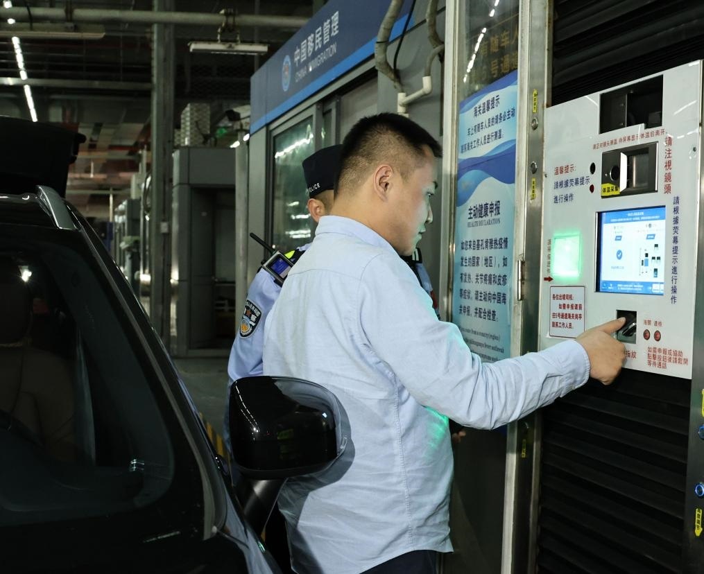 11月15日零時,“粵車南下”首位通關車主周先生在“一站式”通道辦理通關手續(xù)。新華社記者 黃國保 攝