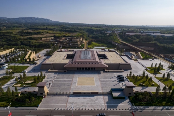 從空中俯瞰陶寺遺址博物館,外觀設計呈現(xiàn)一個“中”字。(資料圖)新華網發(fā)(王梓軒攝)