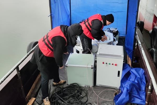 團隊成員冒著嚴寒在湖上調(diào)試設(shè)備。