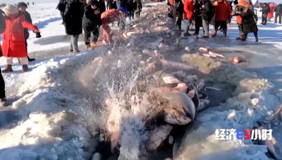 為了吸引游客,查干湖還推出私人訂制捕魚、冰下盲盒等新項目。100米長的掛網(wǎng),游客組隊拉拽,親手捕魚后,可以直接送進后廚做成鐵鍋燉。