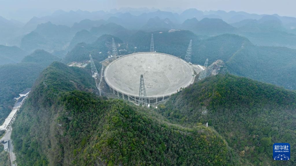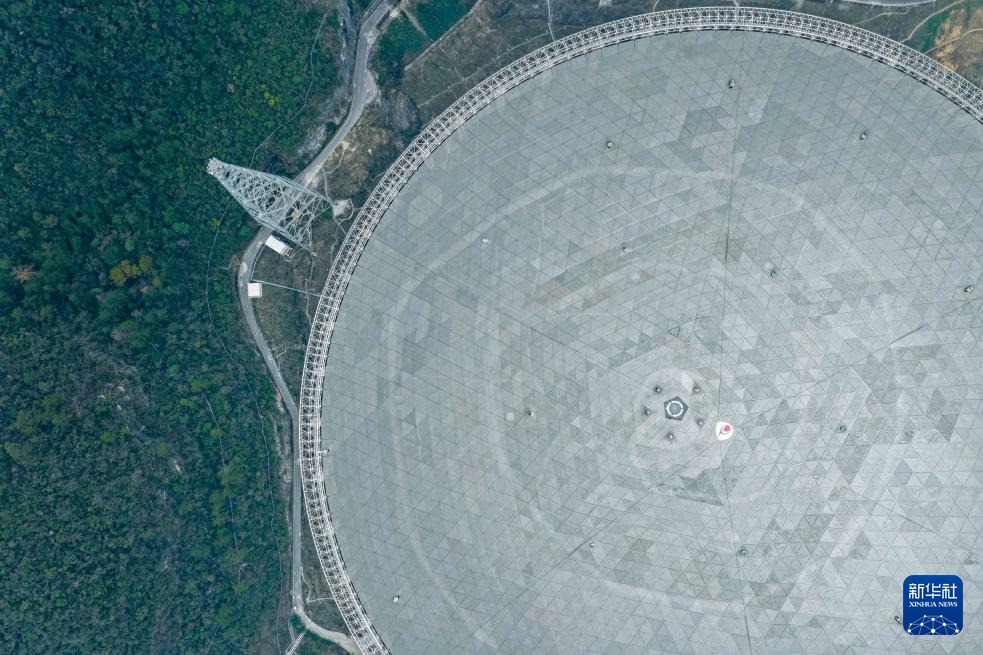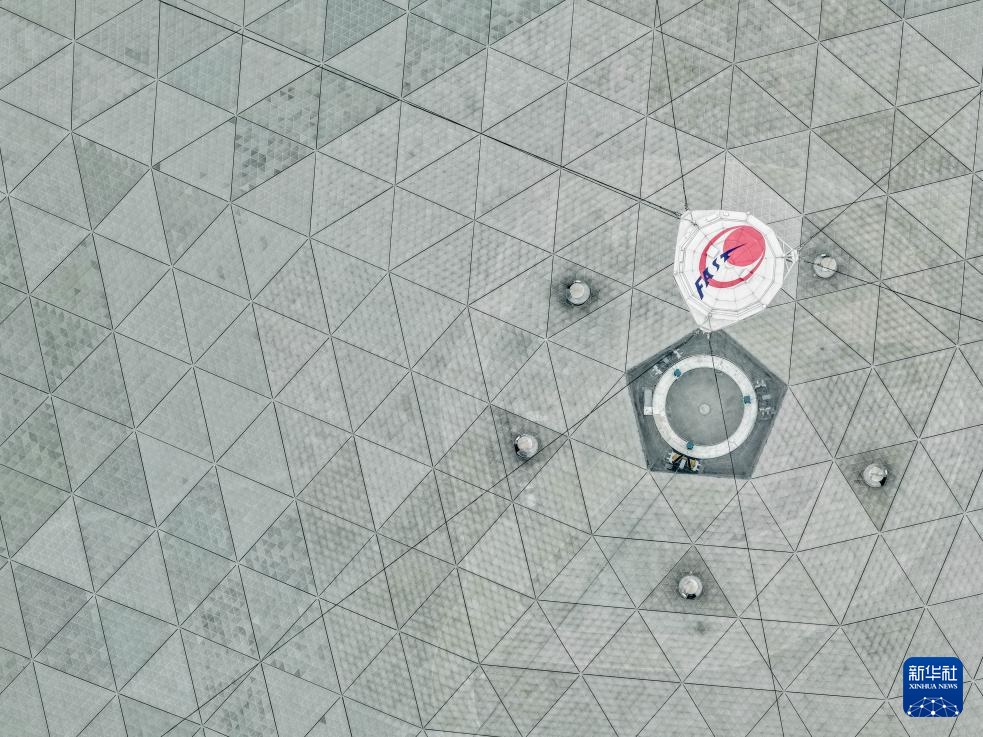 1月16日拍攝的“中國(guó)天眼”(無(wú)人機(jī)照片,維護(hù)保養(yǎng)期間拍攝)。