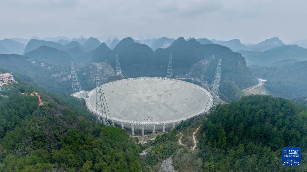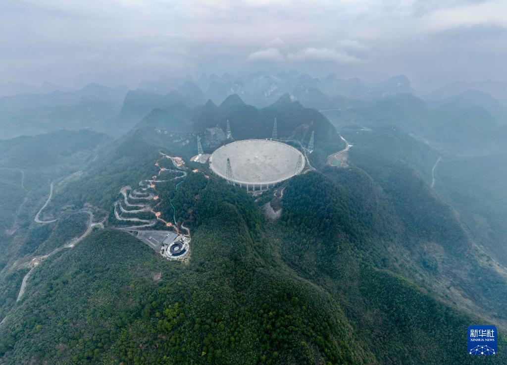 1月16日拍攝的“中國(guó)天眼”(無(wú)人機(jī)全景照片,維護(hù)保養(yǎng)期間拍攝)。