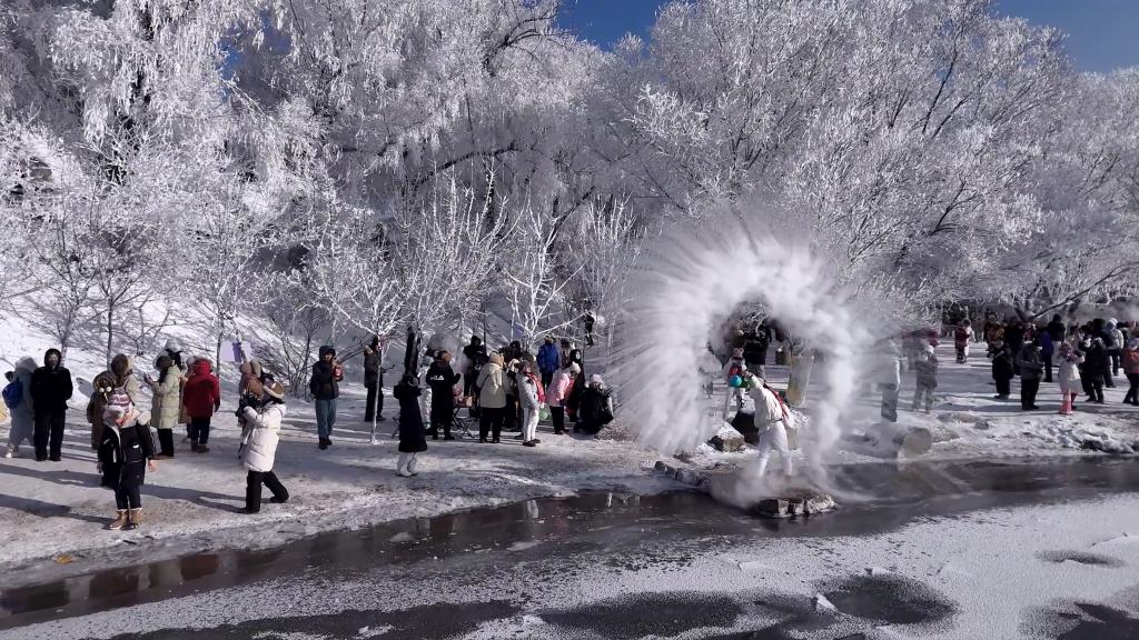 寒冬時(shí)節(jié),吉林省吉林市松花江畔?,F(xiàn)“忽如一夜春風(fēng)來(lái),千樹萬(wàn)樹梨花開”的霧凇奇景。