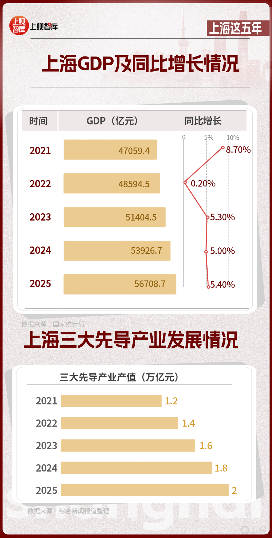 2023年,上海成為全國(guó)首個(gè)經(jīng)濟(jì)總量突破5萬(wàn)億元的城市;2025年,上海GDP突破5.6萬(wàn)億元,向下一個(gè)里程碑進(jìn)發(fā)。