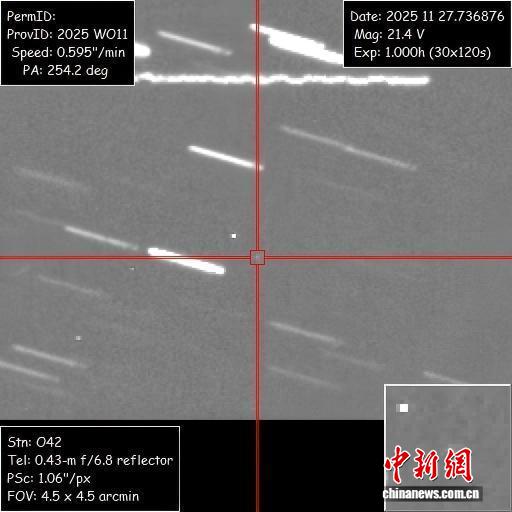 中新網(wǎng)昆明2月4日電 (方舟 錢磊)記者2月4日從云南省麗江市天文協(xié)會(huì)獲悉,近日,由該協(xié)會(huì)與臺(tái)灣省嘉義市天文協(xié)會(huì)聯(lián)合開展的“星空橋梁天體搜尋計(jì)劃”取得重要進(jìn)展。雙方協(xié)作在麗江雙子天文莊園發(fā)現(xiàn)一顆新的主帶小行星,該小行星已獲得國(guó)際小行星中心(IAU MPC)正式認(rèn)證,并被賦予臨時(shí)編號(hào)2025WO11。這是云南省歷史上首個(gè)通過業(yè)余天文望遠(yuǎn)鏡設(shè)備發(fā)現(xiàn)并獲得國(guó)際認(rèn)證的新小行星。