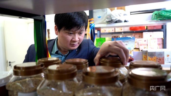 蔣元生查看新上架的青海特產(chǎn)(央廣網(wǎng)記者 賈海元 攝)