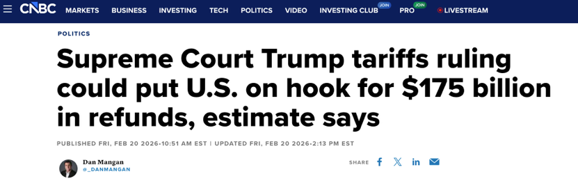 更值得注意的是,從近兩天動(dòng)作看,白宮的核心優(yōu)先級(jí)并不是“盡快把錢退回去”,而是“盡快把關(guān)稅工具續(xù)上”。白宮一方面通過(guò)行政令,終止依據(jù)IEEPA加征的額外從價(jià)稅,另一方面又迅速依《1974年貿(mào)易法》第一百二十二條祭出為期150天的臨時(shí)全球15%關(guān)稅,同時(shí)加大利用301條甚至232條等傳統(tǒng)工具,繼續(xù)搭建新的關(guān)稅墻。這套動(dòng)作釋放的信號(hào)十分明確:關(guān)稅杠桿要繼續(xù)用,至于已經(jīng)收來(lái)的稅款怎么退、退多少,姑且交給訴訟和程序去磨。換句話說(shuō),即便法院逼著政府退錢,白宮也在試圖通過(guò)新一輪、基于其他法律授權(quán)的關(guān)稅,把現(xiàn)金流盡可能補(bǔ)回來(lái)。