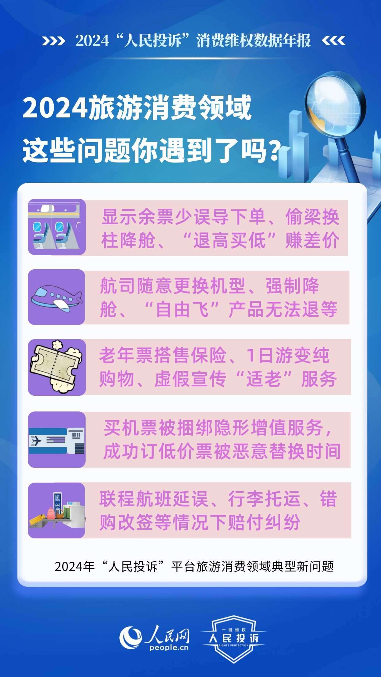 2024年,旅游消費持續(xù)火爆,以舊換新“換”出消費新活力,直播電商“品質化”轉型,新能源汽車購銷兩旺……在消費市場熱力持續(xù)提升的背景下,旅游產品退訂難,電商促銷虛假價保,直播間營銷違規(guī),車險車貸服務欺詐,AI培訓貨不對板等消費侵權問題引發(fā)廣泛關注。“人民投訴”發(fā)布年報帶您回顧這一年來,平臺消費維權熱點和入駐企業(yè)積極處理糾紛的舉措。