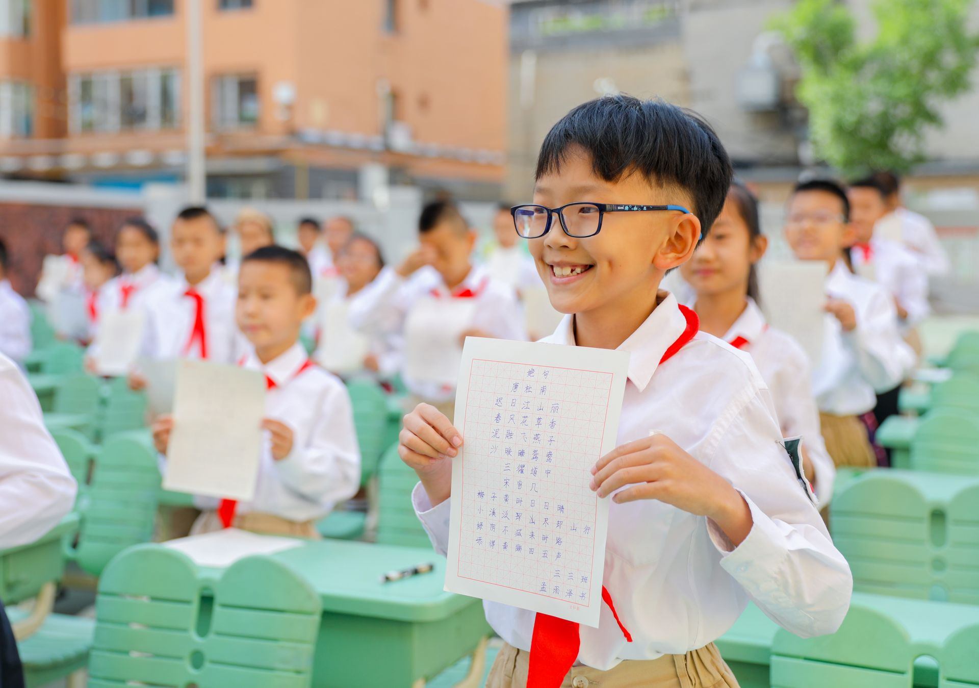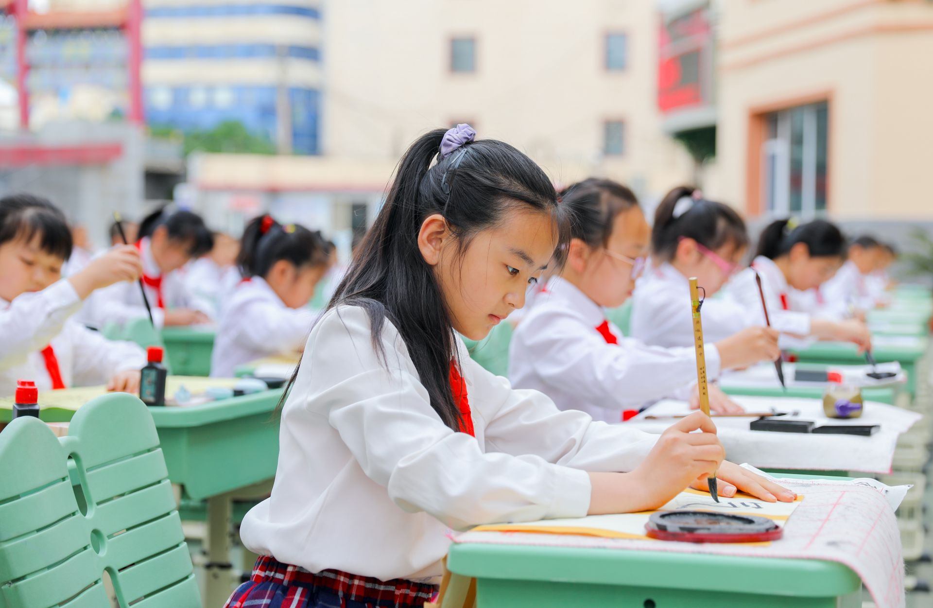 6月13日,呼和浩特市玉泉區(qū)恒昌店巷小學的學生們正在參加書法比賽。當日,該?!靶@書法文化節(jié)”漢字書寫大賽開賽,200多名學生在硬筆和軟筆項目上展開比拼。活動旨在提高孩子們漢字書寫水平,弘揚中華民族優(yōu)秀傳統(tǒng)文化。
