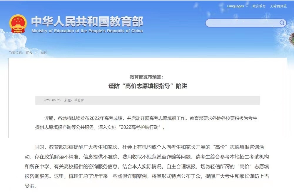 圖為教育部官網(wǎng)截圖