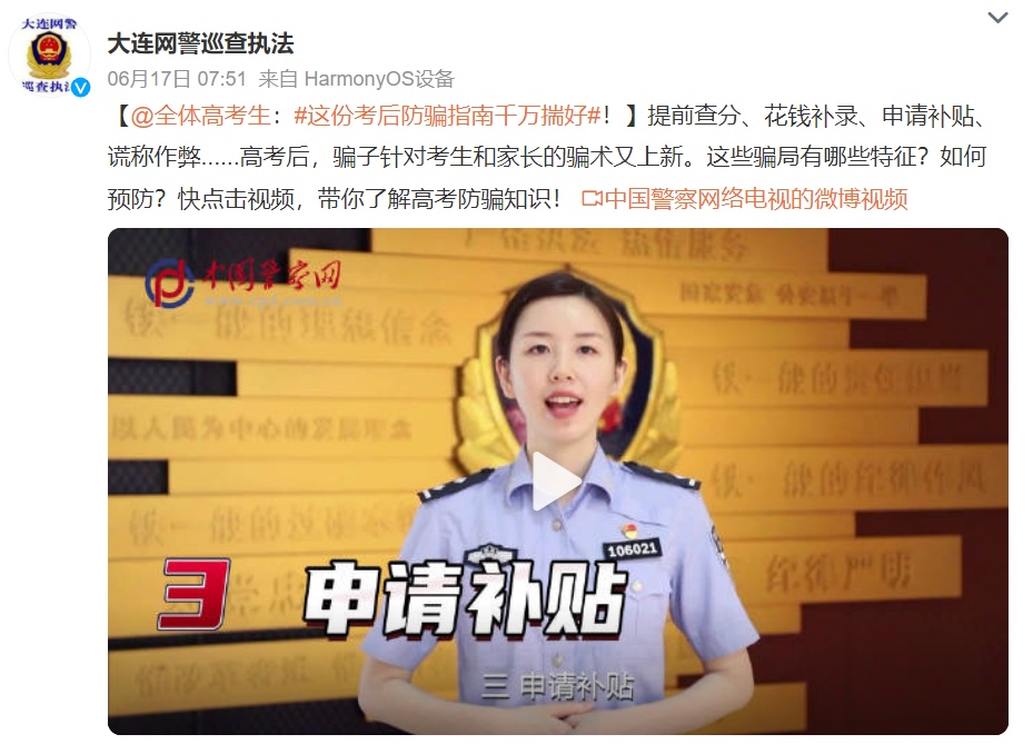 警方提醒廣大考生及考生家長(zhǎng),不管詐騙手段如何演變,萬(wàn)變不離其宗的“核心需求”就是“要錢”,因此在收到此類短信或電話時(shí),應(yīng)第一時(shí)間與學(xué)校、教育部門核實(shí),在無(wú)法確認(rèn)信息真實(shí)性的情況下,可撥打96110咨詢或舉報(bào)。此外,不要抱有僥幸心理,任何打著有“內(nèi)部名額”或“內(nèi)部渠道”的旗號(hào)要求繳納費(fèi)用的通知均為詐騙。