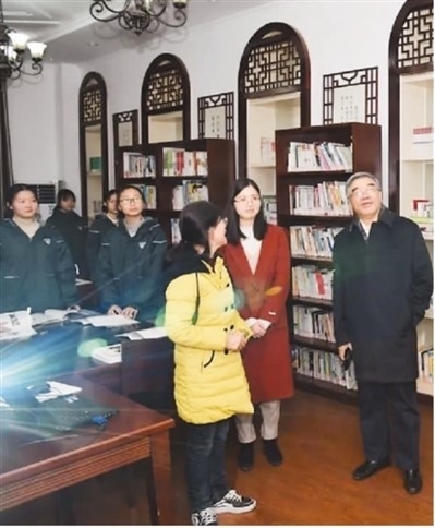朱永新(左三)在基層開展教育調(diào)研。資料圖片