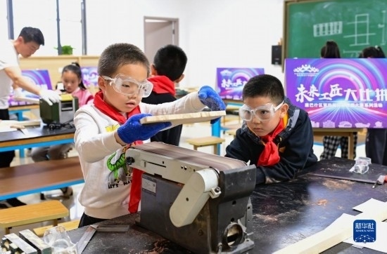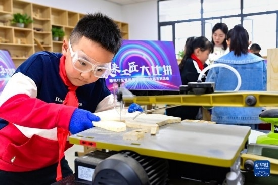 當(dāng)日,內(nèi)蒙古鄂爾多斯市康巴什區(qū)第四屆中小學(xué)生勞動技能大賽“未來工匠大比拼”活動在康巴什區(qū)青少年發(fā)展中心舉行,來自當(dāng)?shù)?所小學(xué)的100名“小工匠”在創(chuàng)意設(shè)計(jì)、木材加工等環(huán)節(jié)中感受勞動之美,學(xué)習(xí)工匠精神。