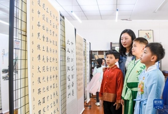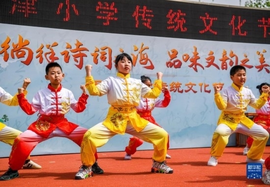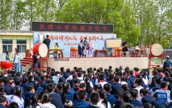 當(dāng)日,以“徜徉詩(shī)詞之海,品味文韻之美”為主題的傳統(tǒng)文化節(jié)在天津小學(xué)舉行。學(xué)生們?cè)诶蠋煹闹笇?dǎo)下參與國(guó)學(xué)朗誦、京劇選段表演、書畫展示等活動(dòng),感受傳統(tǒng)文化的魅力。