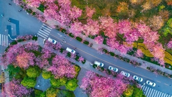 云南大學校園內櫻花爛漫。云南大學供圖