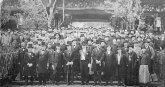 1923年4月20日,東陸大學隆重舉行新校舍奠基典禮暨大學開學典禮。奠基儀式后,唐繼堯(左5)、董澤(左1)與英、美、法、日等國領事、河內大學代表、省議會議長、航空處處長等政府官員合影。云南大學供圖