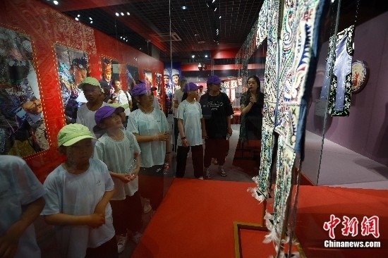 圖為藏族青少年們參觀美術(shù)館。中新社記者 富田 攝