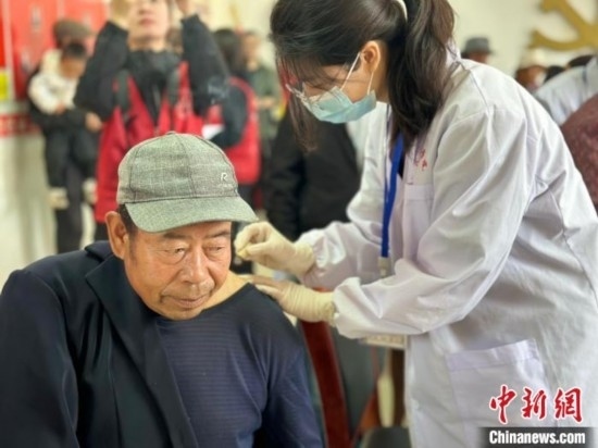 圖為長(zhǎng)沙醫(yī)學(xué)院學(xué)生為紅崖溝村村民艾灸治療。劉洋 攝