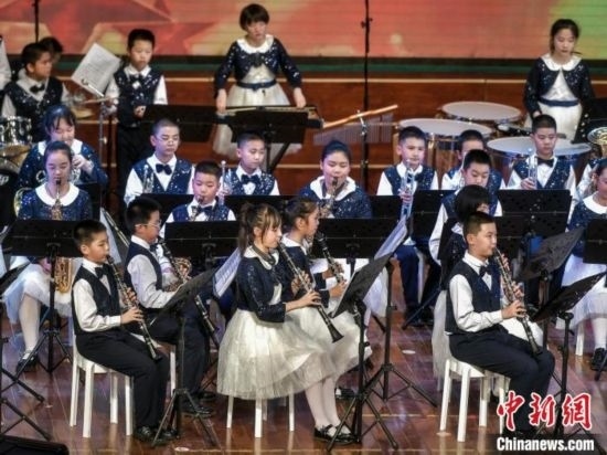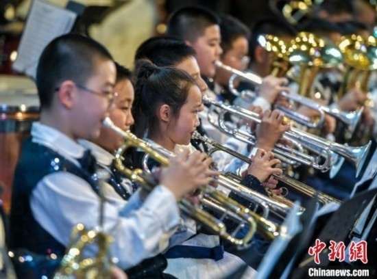 12月27日,新疆烏魯木齊市沙依巴克區(qū)教育系統(tǒng)“龍行龘龘 樂動(dòng)童年”2024年交響管樂新年音樂會(huì)在該市青少年宮舉辦,來自烏魯木齊市第27小學(xué)的交響管樂團(tuán)演奏了《紅旗頌》、《茉莉花》等經(jīng)典曲目,并與絲路名師合唱團(tuán)合作演出《青春之舞》、《最炫民族風(fēng)》等曲目。據(jù)介紹,該交響管樂團(tuán)成立于2014年,規(guī)模從最初的40余人發(fā)展到現(xiàn)今近70人,團(tuán)員平均年齡10歲。