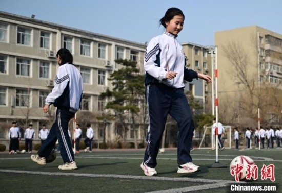 圖為沈陽(yáng)市第一三四中學(xué)濱河路分校學(xué)生在上體育課。中新網(wǎng)記者 于海洋 攝