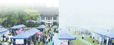 復(fù)旦大學(xué)開展生涯服務(wù)集市活動(dòng),促進(jìn)人才供需對接。岑丹峰攝