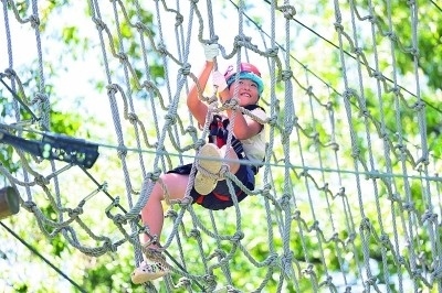 孩子在江蘇南京一家探險(xiǎn)樂園體驗(yàn)“樹上探險(xiǎn)”活動(dòng)。新華社發(fā)