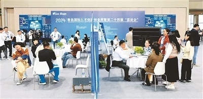 圖為2024青島國(guó)際人才創(chuàng)新創(chuàng)業(yè)周暨第二十四屆“藍(lán)洽會(huì)”現(xiàn)場(chǎng)。孫冰攝