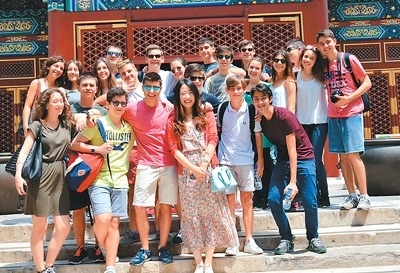 孫曉宇(前排左四)帶著意大利羅馬國(guó)立住讀學(xué)校學(xué)生在北京參加夏令營(yíng)。