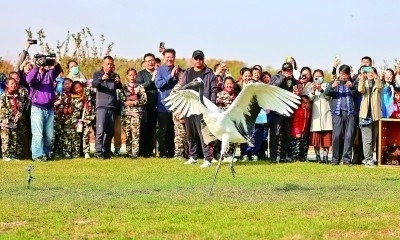 在河北秦皇島市鴿子窩公園,國家保護(hù)鳥類被放歸自然時(shí),市民紛紛拍照記錄。新華社發(fā)