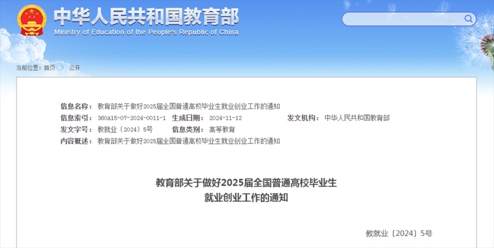 教育部實施2025屆全國普通高校畢業(yè)生就業(yè)創(chuàng)業(yè)促進(jìn)和服務(wù)體系建設(shè)行動