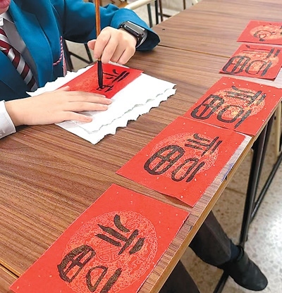 在馬耳他的一些校園中,春節(jié)的氛圍同樣濃厚。圣瑪格麗特中學“中國角”的師生們手握毛筆,全神貫注地書寫著春聯(lián)和福字;在馬耳他中文學校,學生們在孔院老師的指導下,手指翻飛間,將紅紙化作一幅幅妙趣橫生的剪紙作品。