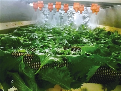 在紫蘇基地加工車間,20多名工人正在熱火朝天地忙碌著,采摘好的紫蘇葉在這里經(jīng)過清洗、精選、包裝等多道工序處理后,會(huì)按照不同品級進(jìn)行精細(xì)化捆扎分類,然后被送入冷庫進(jìn)行預(yù)冷,整個(gè)操作都是在無菌環(huán)境下進(jìn)行?!艾F(xiàn)在臨時(shí)工、長期工加一起有20多人,5年來,我們在七圪臺村、什不斜氣村、什拉烏素村等周邊培訓(xùn)了村民200人左右,他們每年農(nóng)閑時(shí)就會(huì)來基地打工,男工負(fù)責(zé)大棚管理、種植,女工負(fù)責(zé)采葉子、分葉子、包葉子。”包迎春向記者介紹道。