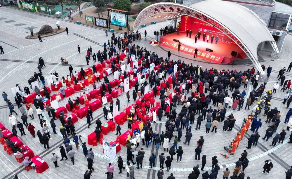 2月4日拍攝的浙江省義烏市蘇溪鎮(zhèn)“百企千崗”新春首場招聘會現(xiàn)場(無人機照片)。新華社記者 徐昱 攝